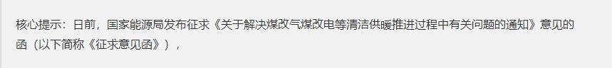 日前,國家能源局發(fā)布征求《關(guān)于解決“煤改氣”“煤改電”等清潔供暖推進過程中有關(guān)問題的通知》意見的函(以下簡稱“《征求意見函》”),引發(fā)業(yè)內(nèi)熱議。